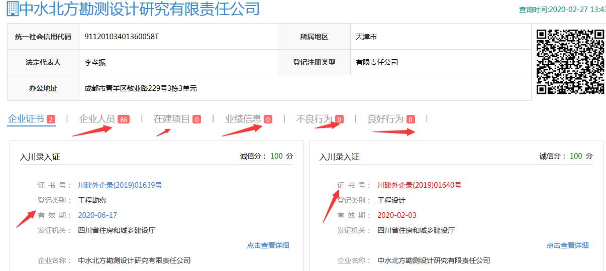 到此已經完成了查詢所有步驟,從查詢的結果上直觀反映了企業的信息,如果沒有查詢到,證明該省外企業沒有辦理入川登記或者正在辦理之中,四川省建設廳在管理企業信息方面,做的公開透明。因此只要外地企業成功辦理了入川登記,不管它是施工企業、設計企業、勘察企業、造價咨詢等建筑行業的公司,通過這種方法都可以查詢,所有數據均以四川省建設廳官方網站查詢為準。