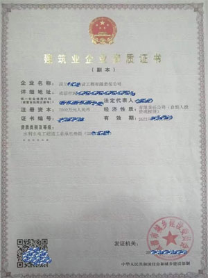 公司營業(yè)執(zhí)照經(jīng)營范圍:住宅房屋建筑;建筑勞務(wù)分包;機電工程;建筑機電安裝工程;建筑幕墻工程;城市及道路照明工程建筑;地基基礎(chǔ)工程;電力工程設(shè)計服務(wù);電子與智能化工程;防水防腐保溫工程;鋼結(jié)構(gòu)工程;公路工程施工;公路交通工程建筑;公...